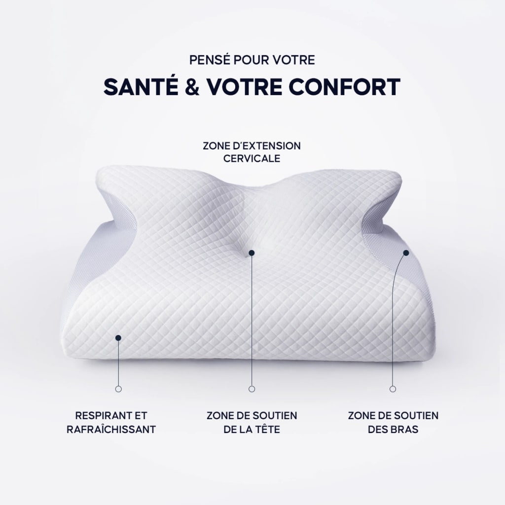 Discover the reiller Sova pillow’s ergonomic butterfly shape that cradles your head, neck, and shoulders for cloud-like comfort.